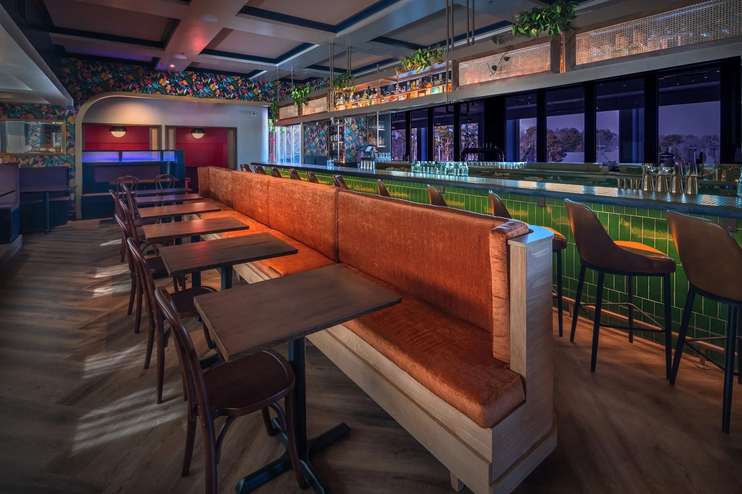 Our Emerald Room, is an indoor shared dining space designed for larger groups and a lively Easter brunch atmosphere.